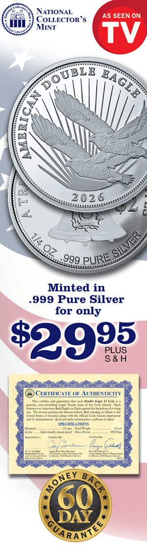 Now, you can reserve your own 2026 Silver Double Eagle $2 Coin. Issue price was to be set at $49 per coin. However, during this special release, it can be yours for only $29.95.